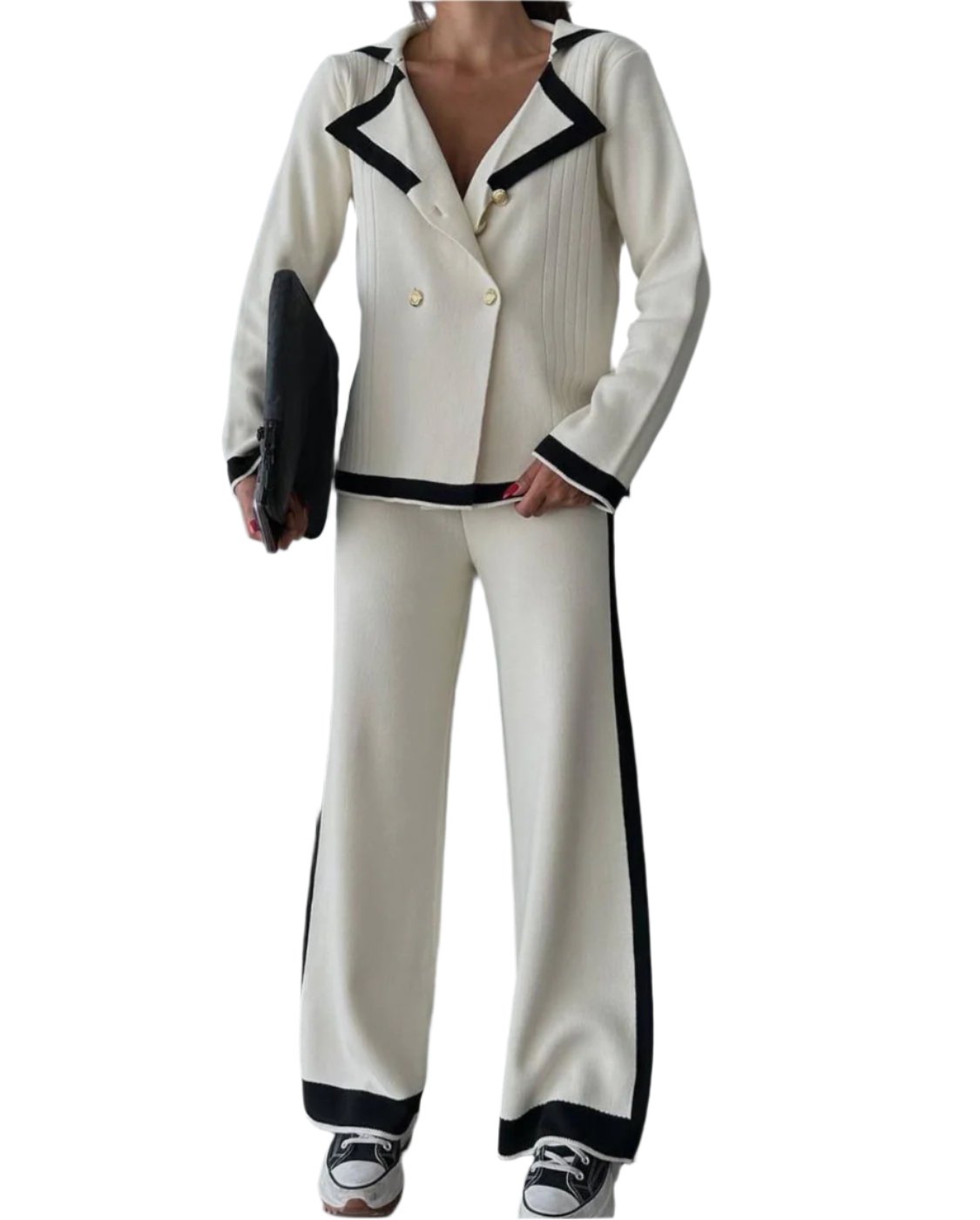 Versatile Wardrobe Essential: Whether you're heading to the office, attending a social event, or enjoying a night out, this Color Contrast Knit Blazer & Pants Set is a versatile addition to your wardrobe. Easily dress it up with heels or down with sneakers for a chic, effortless ensemble.